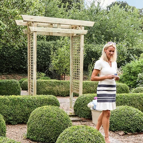 Inspired by Japanese architecture and absolutely on trend, this elegant Cherry Blossom Arch brings an oriental feel to your garden or outside space.  Not only a stunning feature, it is also functional, incorporating a square trellis, which is a perfect support for climbing plants and it makes a great divider between different areas of the garden.