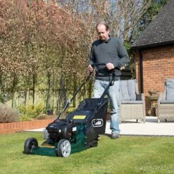 The Webb WER410HP Hand-Propelled Petrol Rotary Lawnmower can either collect or discharge grass-clippings, from the metal cutting blade, standard on all Webb machines.