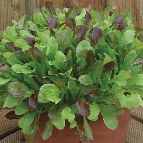 Mixed Lettuce Leaves this mix of quality seeds gives fast results ? either sown in the ground or in containers. It?s an easy way of ensuring a constant supply of fresh, tasty salad leaves all through the summer. The packet includes equal seed quantities of: Catalogna, Cocarde, Curled Red American, Grand Rapids, Red salad bowl, Rossa di Trento. Varieties grow at different rates, giving a different salad mix at every cut. 775 Seeds.